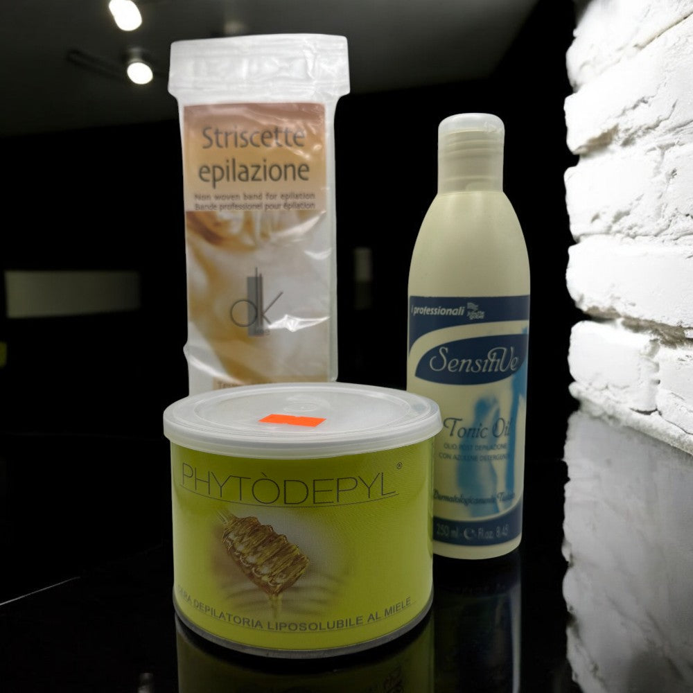 Kit Professionale Cera Depilatoria Miele+Olio post depilazione+Striscie - 400 ml