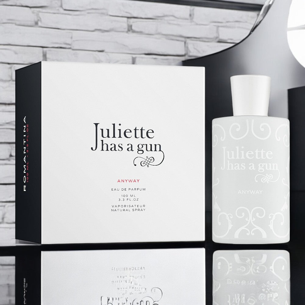 Juliette has a Gun Anyway EDP è un eau de parfum agrumato unisex. Solo quindici ingrediente sono in gioco per questa fragranza. Un ritorno all'essenziale per creare il meglio con una formula semplice e originale. Una miscela di muschi, legni e note floreali riuniti in una scia luminosa, sottile e persistente. Lontana dall'essere un profumo anonimo, "Anyway" è una fragranza distintiva in grado di combinarsi col femminile quanto col maschile.